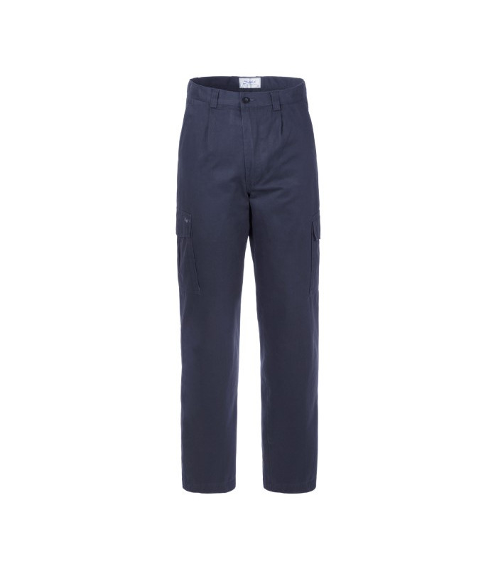 Foderato internamente, chiusura alla patta con cerniera e bottone in cintura, elastico ai fianchi interno regolabile, 2 tasche anteriori interne, 2 tasche posteriori interne a filetto chiuse con aletta e punto velcro, 2 tasconi applicati alle cosce con soffietto laterale e centrale chiusi con aletta e punto velcro, cuciture due aghi con filo in poliestere cotone tessuto esterno in 100% cotone gabardine peso 260 grammi, fodera interna in 100% cotone peso 160 grammi