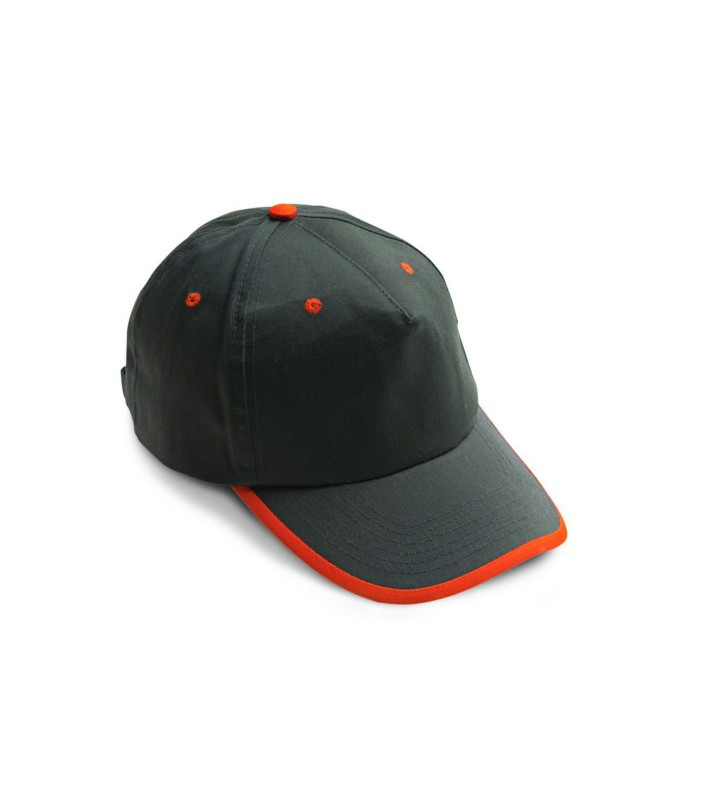 Chiusura posteriore in metallo con regolazione di misura, composto da 5 pannelli, con 6 fori di aerazione ricamati con filo di colore a contrasto, pannello frontale rinforzato con profilo di colore a contrasto 80% poliestere 20% cotone