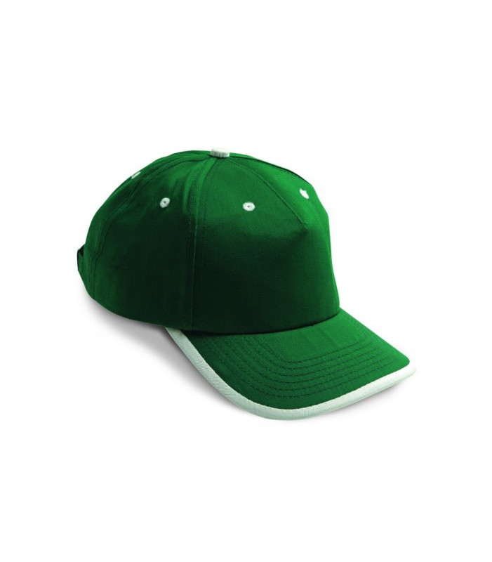 Chiusura posteriore in metallo con regolazione di misura, composto da 5 pannelli, con 6 fori di aerazione ricamati con filo di colore a contrasto, pannello frontale rinforzato con profilo di colore a contrasto 80% poliestere 20% cotone